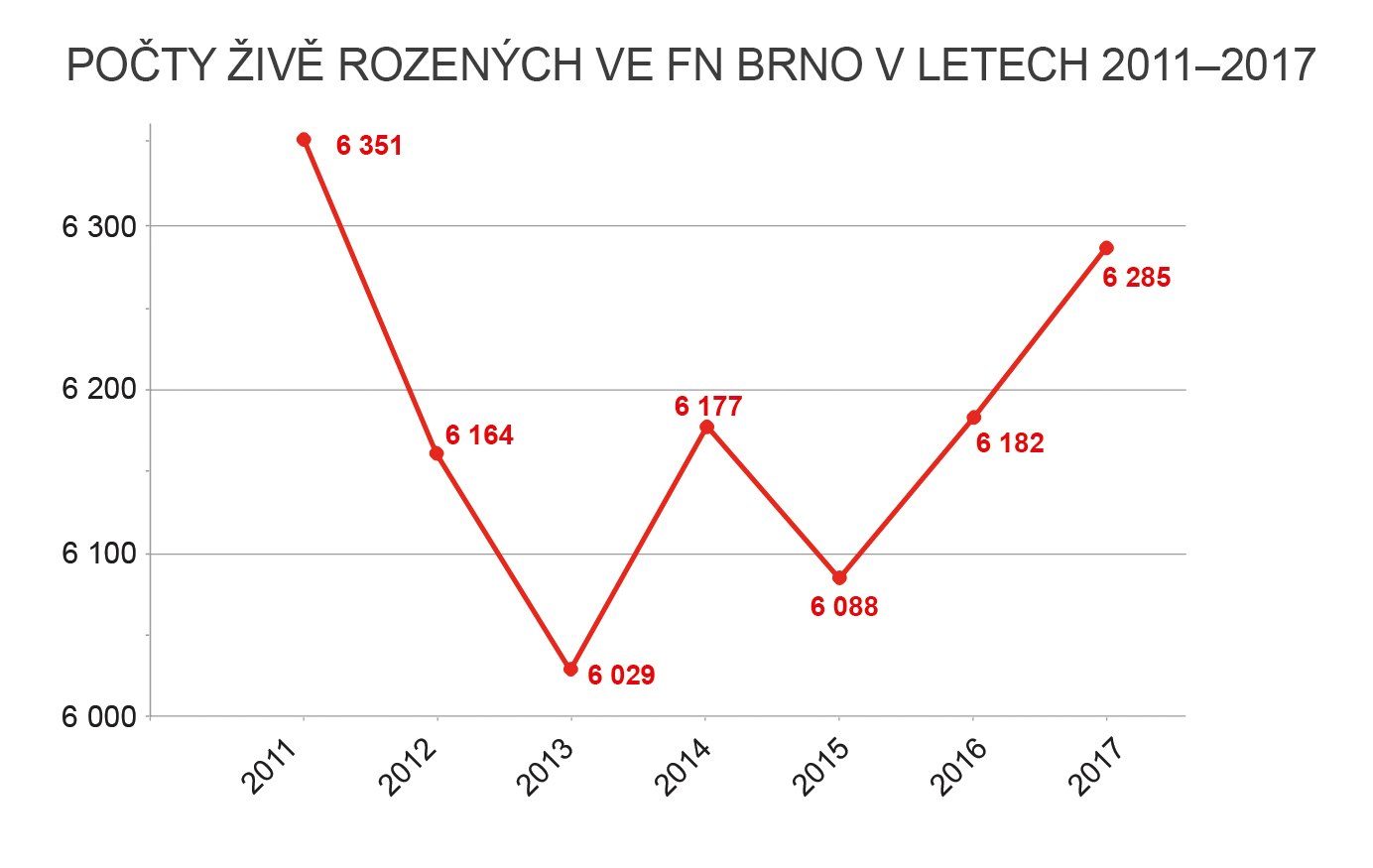 Počty živě rozených ve FN Brno v letech 2011-2017