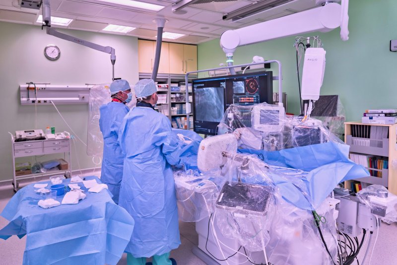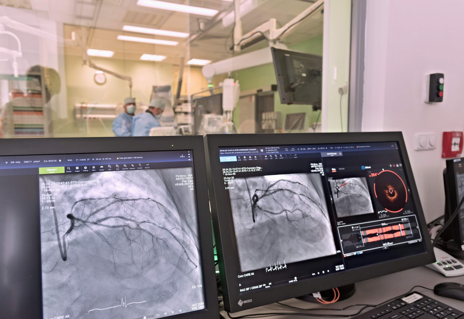 „Jednalo se o zákrok na koronárních tepnách u pacienta nad sedmdesát let, který si stěžoval zejména na dušnost, jeho srdce nefungovalo ideálně, měl i další rizikové faktory a především, měl velké koronární postižení, kdy byla postižena nejdůležitější tepna na srdci. Ta byla významně zúžená na více místech, bylo v ní obrovské množství vápníku a museli jsme postupovat velmi opatrně a nestandardně,“ upřesnil přednosta Interní kardiologické kliniky prof. Petr Kala s tím, že kolegům v živém vstupu v sekci spolupořádané European Bifurcation Club ukázali tři různé způsoby, jak se vypořádat právě s vápníkem v srdeční cévě.