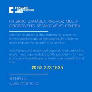 /14. 1. 2022/ Do současnosti probíhalo vyšetřování pacientů pod klinikami plicní a neurologickou. Nyní rozšiřujeme z důvodu počtu pacientů a čekacích lhůt služby v oblasti spánkové medicíny v multioborovém spánkovém centru.