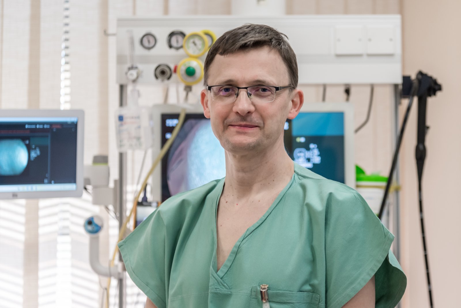 Máme ještě další vyšetřovnu s přístroji od jiného výrobce. To nám umožní provádět terapeutické výkony i s delší časovou náročností a zároveň dostatečnou kapacitu pro vyšetřování pacientů referovaných z nemocnice z důvodu akutních potíží. U pacientů, u kterých nelze vyšetření endoskopem celé provést, je možné ve spolupráci s Klinikou radiologie a nukleární medicíny střevo vyšetřit pomocí počítačové tomografie ve speciálním algoritmu. I toto vyšetření však vyžaduje přípravu a vyčištění střeva předem.