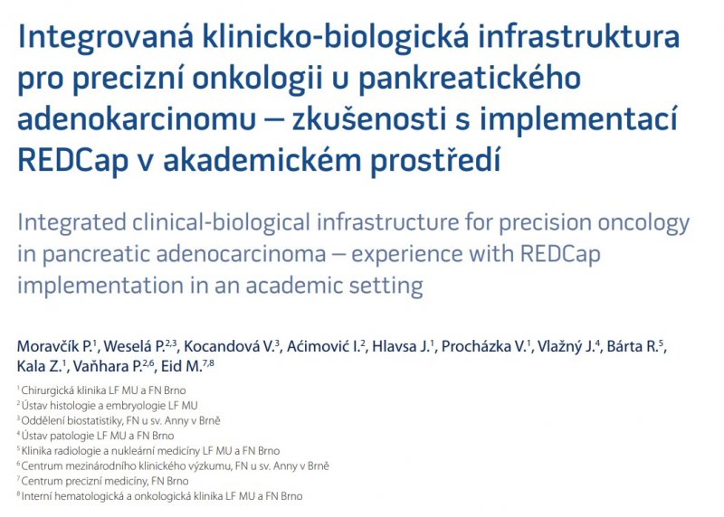 Základem této infrastruktury je databázová platforma REDCap, která umožňuje bezpečný a longitudinální sběr demografických a klinických údajů, výsledků molekulárně-genetických vyšetření i informací o léčbě a přežití pacientů. Infrastruktura je zároveň propojena s pilotní biobankou biologických vzorků, využívanou mimo jiné pro tvorbu 3D nádorových modelů (organoidů a sféroidů). Datový soubor v současnosti zahrnuje více než 100 pacientů a vytváří základ datově řízeného a personalizovaného přístupu k léčbě PDAC. Jedním z cílů lékařů a vědců z FN Brno a Lékařské fakulty Masarykovy univerzity je rozšířit tento projekt a spolupracovat v této oblasti s dalšími centry v ČR.