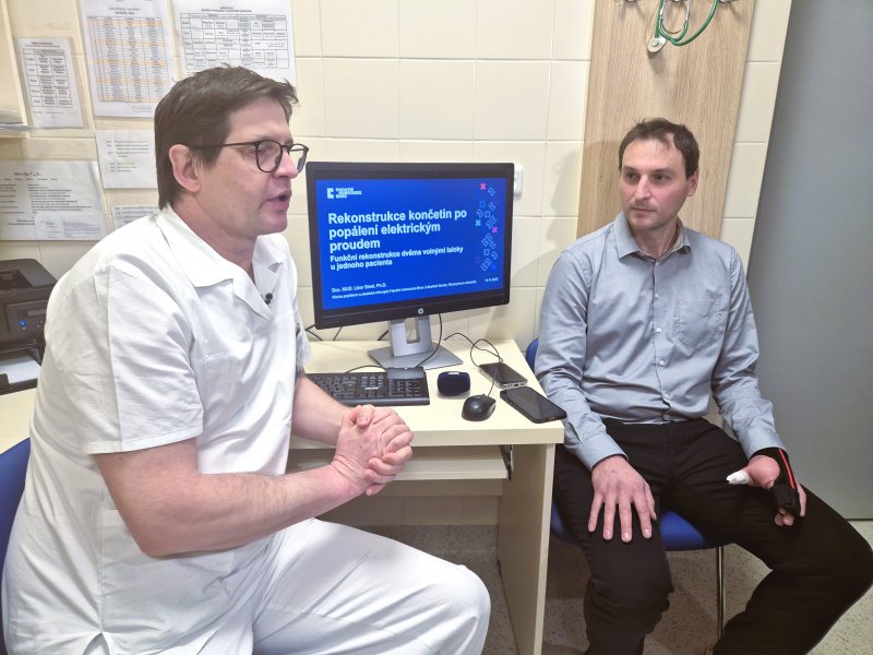 „Konkrétně jsme mu rekonstruovali nenávratně poškozené části palce a ukazováku ruky pomocí volného SCIP laloku, který jsme přenesli z třísla a zároveň jsme nahradili poškozené nervy na těchto prstech. Dále jsme uzavřeli defekt na palci nohy včetně šlach přenosem temporální facie, což je tkáň ze spánkové oblasti, která posloužila jednak jako kryt defektu, a jednak svojí pevností nahradila chybějící šlachu. Tím jsme se vyhnuli amputacím, které by významně zhoršovaly funkci končetin,“ říká přednosta kliniky doc MUDr. Libor Streit, Ph.D., který je v oboru plastických mikrochirurgických operací špičkou v Česku.
