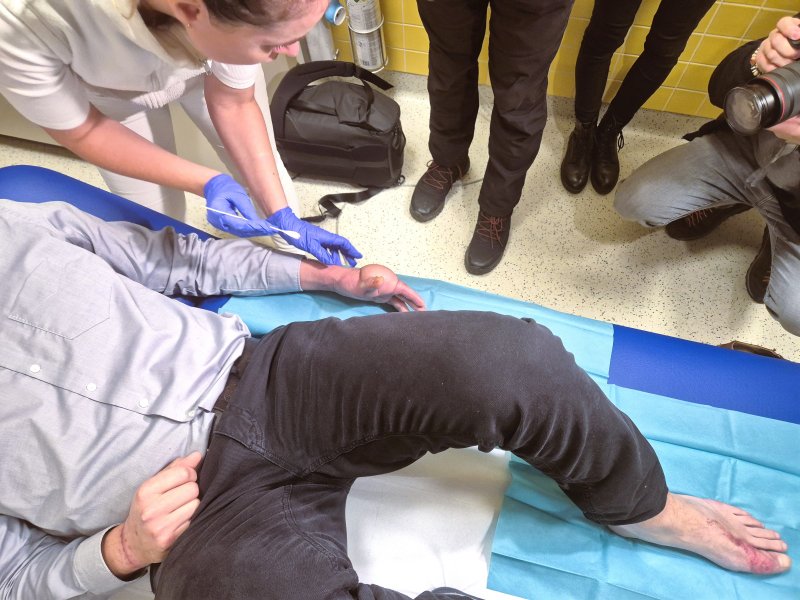 Bezprostředně po nehodě mu naštěstí byla poskytnuta obětavá první pomoc kolegy, které po 20 minutách vystřídala Zdravotnická záchranná služba JMK a pacient byl po celkem třicetiminutové resuscitaci záchranáři přivezen na Kliniku anesteziologie, resuscitace a intenzivní medicíny FN Brno a LF MU, odkud byl následně přeložen právě na Kliniku popálenin a plastické chirurgie, respektive na jednotku intenzivní péče Popáleninového centra.