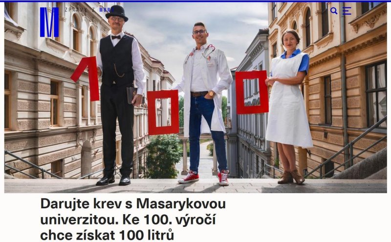 Lékařská fakulta MU spouští akci "100 litrů krve DÍKY MUNI", jejímž cílem je podpora myšlenky dárcovství. Pokud se chcete k akci připojit – darovat krev bude možné od 23. října do 28. ledna 2020. Je nutné se zaregistrovat na konkrétní termín pomocí formuláře, odkaz na něj naleznete zde.