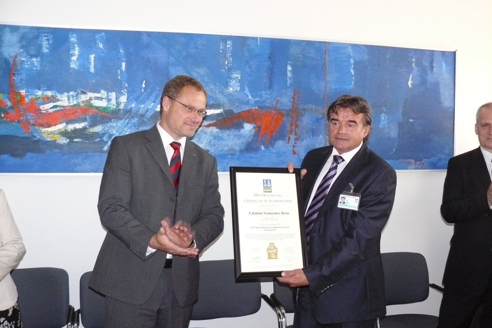 Jeho udělení umožnil úspěšný akreditační audit, který ve dnech 21. - 25. února 2011 proběhl ve FN Brno. Úkolem týmu amerických auditorů z Det Norske Veritas - Health Care bylo posoudit naplnění akreditačních standardů NIAHO, zaměřených zejména na bezpečnost pacientů, personálu a návštěvníků nemocnice.