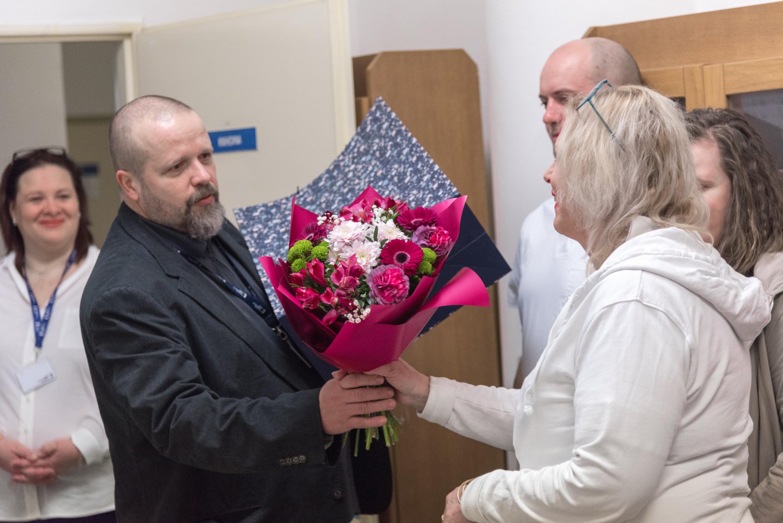 Velké poděkování za dosavadní práci a přínos pro rozvoj rehabilitace a fyzioterapie ve FN Brno obdržela dnes již bývalá primářka tohoto rehabilitačního pracoviště MUDr. Miluše Jurášková. K poděkování se připojil také náměstek léčebné a preventivní péče pro chirurgické obory pro pracoviště Nemocnice Bohunice a Porodnice MUDr. Petr Benda, MHA.