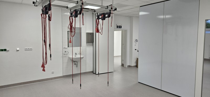 V průběhu následujících dvou týdnů bude probíhat dodávka a instalace nového kancelářského vybavení (stoly, skříně, výpočetní technika). Následně se uskuteční přesun zdravotnického vybavení zpět z provizorních prostor, kde po dobu rekonstrukce probíhala činnost rehabilitačního oddělení.
