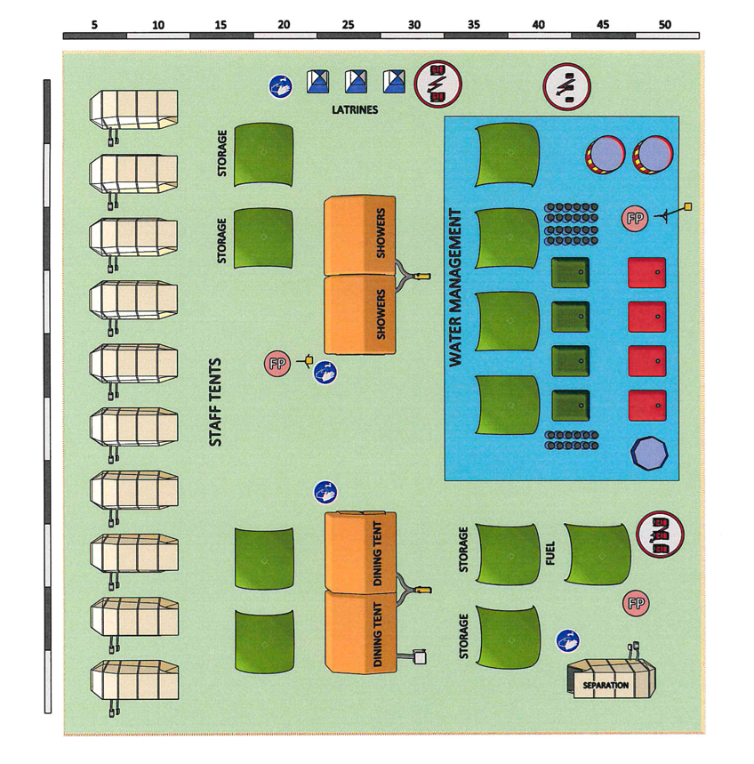 Tým je plně soběstačný v oblasti výroby elektrické energie i vody. Součástí je také systém řízeného odpadového hospodářství včetně likvidace zdravotnického odpadu.