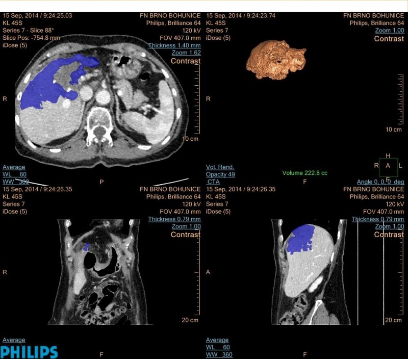 Moderní metody terapie jako transarteriální chemoembolizace jsou již i u nás velmi rozšířené. Na našem pracovišti bylo mezi lety 2010 a 2015 provedeno 606 těchto výkonů. Nejedná se však o levnou metodu léčby, proto je důležité stanovit, kteří pacienti z ní mohou opravdu profitovat. Volumetrie se zdá být jedním z ukazatelů účinnosti léčby, tudíž se jedná o velmi slibnou, ač zatím pouze experimentální metodu hodnocení.