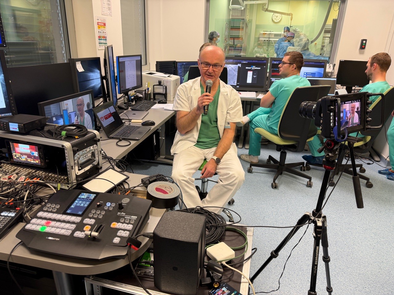 „Konkrétně šlo o speciální funkční testování koronárních tepen u mladší pacientky s námahovými bolestmi na hrudi, u které se nezjistily koronární stenózy. U dalších pacientů se jednalo o komplexní léčebné zákroky s využitím intrakoronárního zobrazení a koronární fyziologie včetně neinvazivního posouzení přímo na sále,“ říká jeden z hlavních pořádajících, přednosta Interní kardiologické kliniky prof. MUDr. Petr Kala, Ph.D., FESC, FSCAI.